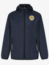 Represent your nation with pride in this Official Team Scotland Shower Jacket. Crafted in a classic navy colourway, it features a woven Scotland badge that showcases your allegiance with authentic style. Elastic banding at the cuffs and hem ensures a secure, comfortable fit that moves with you, whether you're heading to the pitch or cheering from the stands. Perfect for fans who want quality and national pride combined.